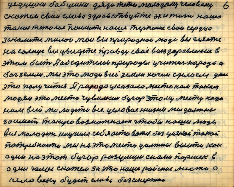 Эх, и жизнь моя тяжёлая ! Поймите вы моё терпение, свои сердца закалите. Милые мои люди, гляньте вы на солнце.