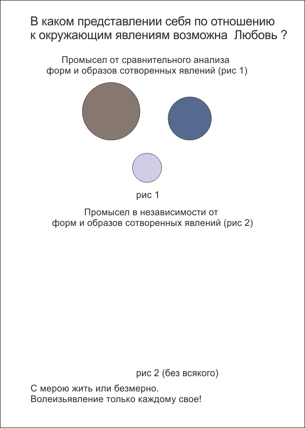 Вернемся к различному отношению к внешнему. Возвышая и унижая, возвышаясь или унижаясь Мы вносим дисгармонию, раздражаемся и лишаемся возможности проявиться радостно в любви. Ниже я нарисовал рисунок для понимания необходимых условий для проявления свободной от внешнего влияния воли и любви без всякого.