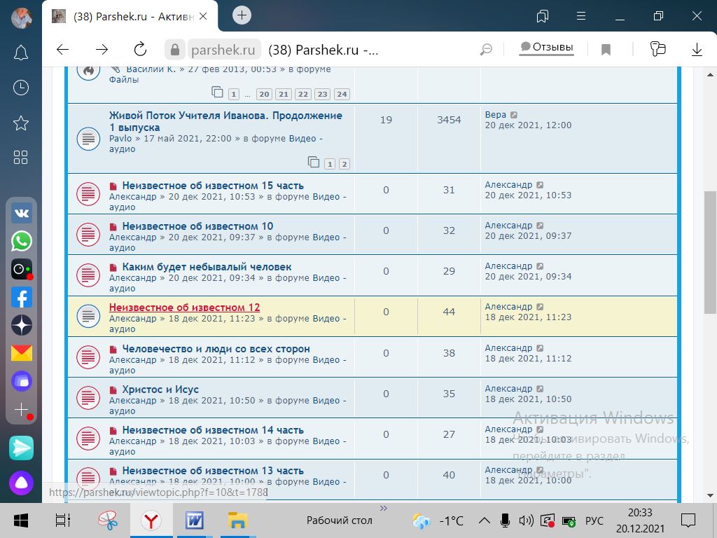 Объеденил все темы старца в одну большую тему, назвал "Видео старца Ю" и прикрепил сверху всех видео, чтобы его больше замечали - я предполагаю именно эту цель ставил Александр размещая много новых тем на форуме, тем самым закрывая возможность без поиска найти еще что-нибудь, кроме старца Ю.