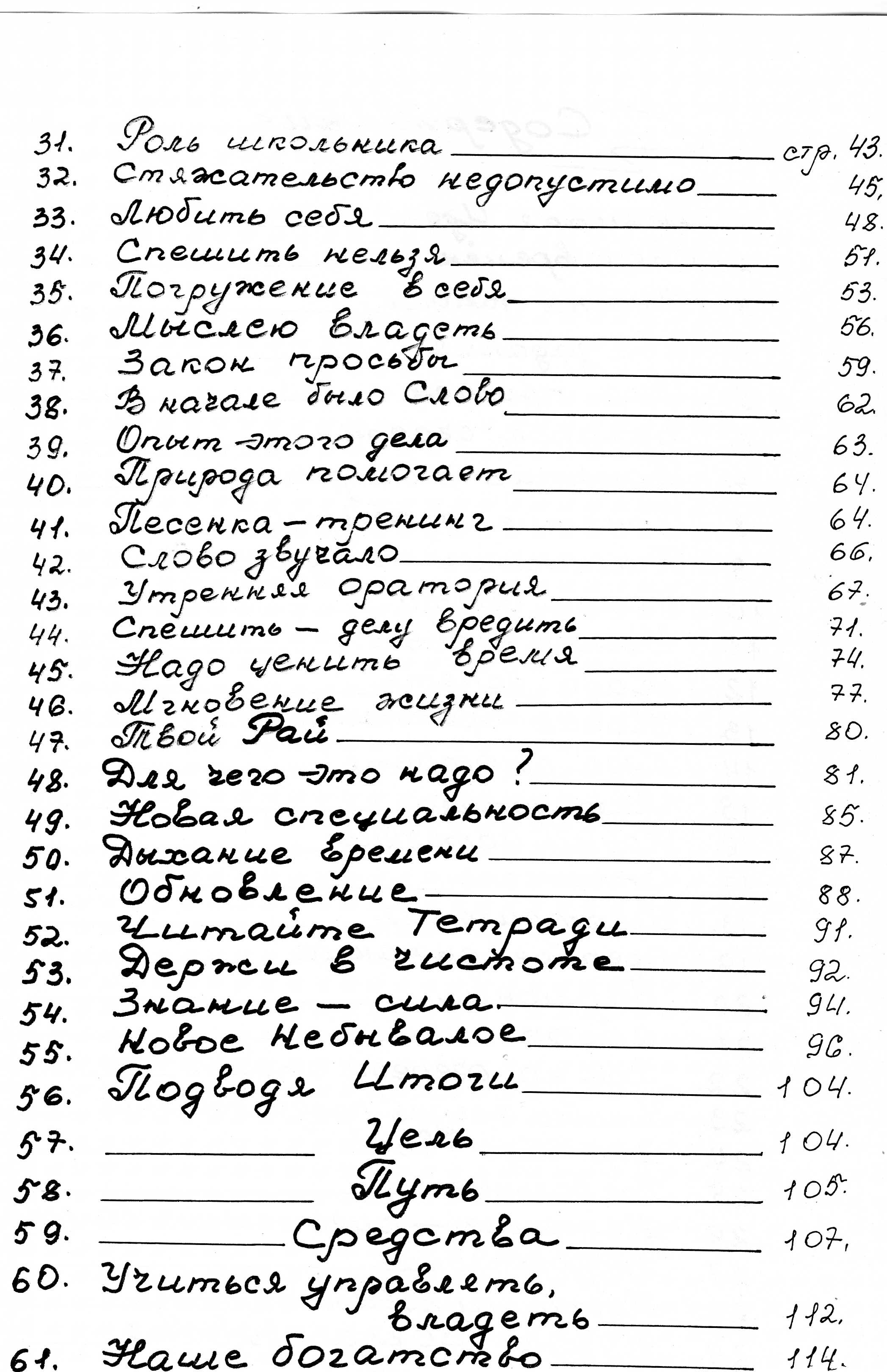 Где эти знания нам брать? Мы привыкли всё нужное брать из тетрадей Учителя или друг у друга. Но Учитель сказал: «Я лишь маленечкой иголочкой проткнул». «ТАЙНУ человек должен найти в самом себе, в своём ТЕЛЕ». «Люди только думают об этом, чтобы им не умирать, а в СЕБЕ они не ищут ИСТИНУ, не становятся на ноги, чтобы быть Богом». «Мы все по этим (предковым) дорогам ходим, свой дух кладём, а чтобы САМ СЕБЯ ТАК ПОЗНАТЬ – этого в жизни нашей не было». «Я пошел искать ИСТИНУ. Она была в МЕНЯ, в моём ТЕЛЕ». «А мы люди такого порядка, кто в природе таким оружием ищет ТАЙНУ. Бог говорит, надо не в природе искать ТАЙНУ. Надо искать ТАЙНУ В САМОМ СЕБЕ, в человеке». «Время тому пришло – во мне к СЕБЕ ИДИТЕ».